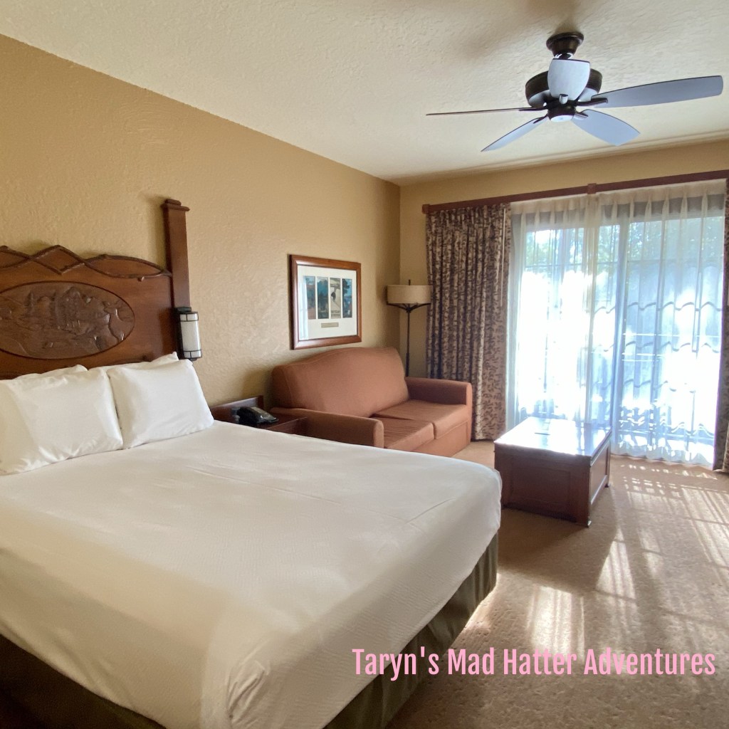 Around 3:00 p.m. we got our text that the room was ready! The Wilderness Lodge has three different “sections” if you will. The regular Lodge part, Copper Creek Villas (Disney Vacation Club), and Boulder Ridge Villas (Disney Vacation Club). Although two parts are Vacation Club, anyone may book there as a cash room as well.