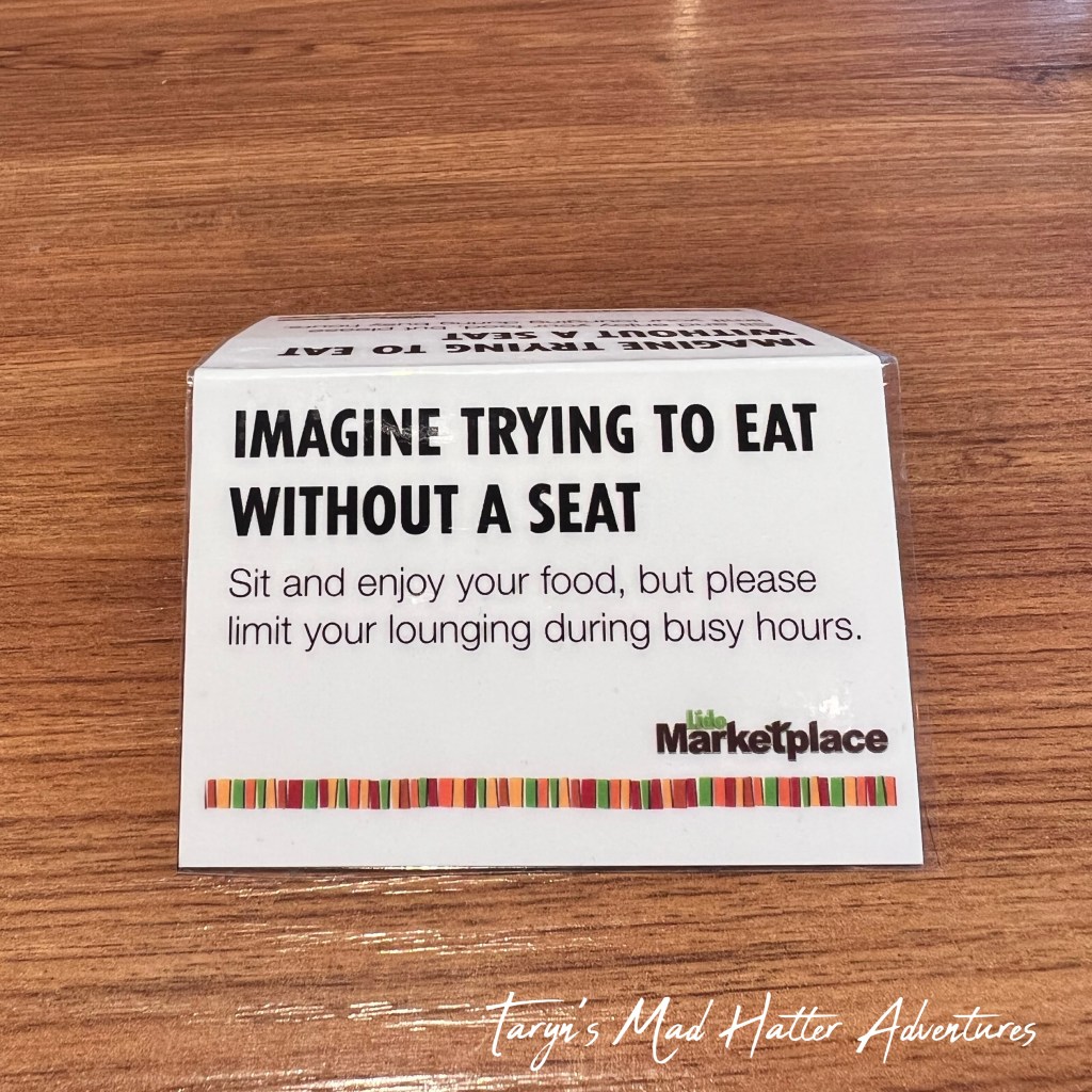 It took foreverrrrrr for us to find a seat. We walked all over the buffet area. Most people find a table and camp out there until the rooms are ready at 1:30 p.m., even though these signs are on the tables: