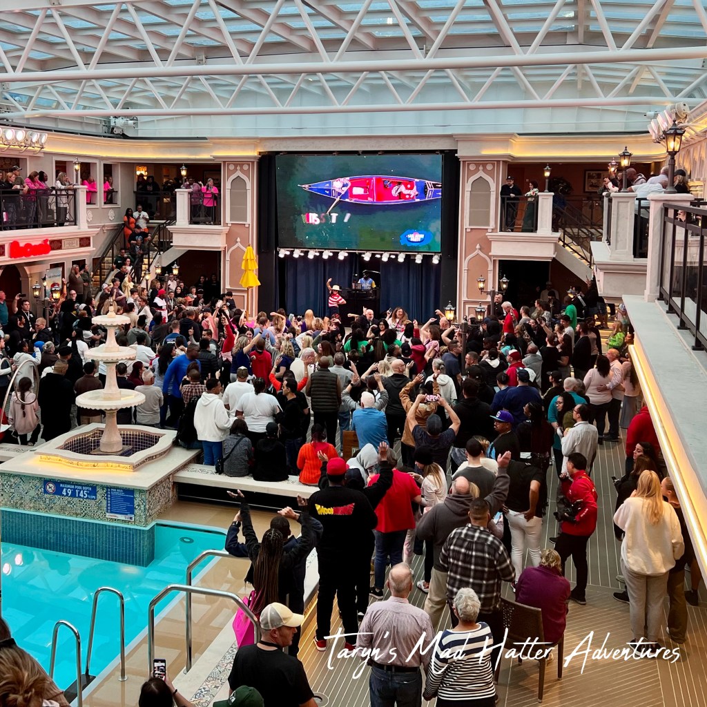 The chaos just entering the ship on Deck 3, Piazza San Marco: