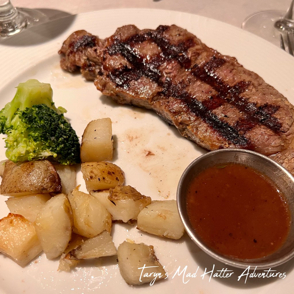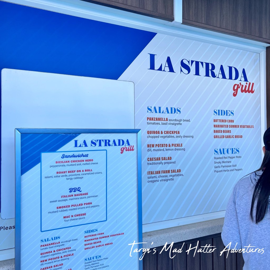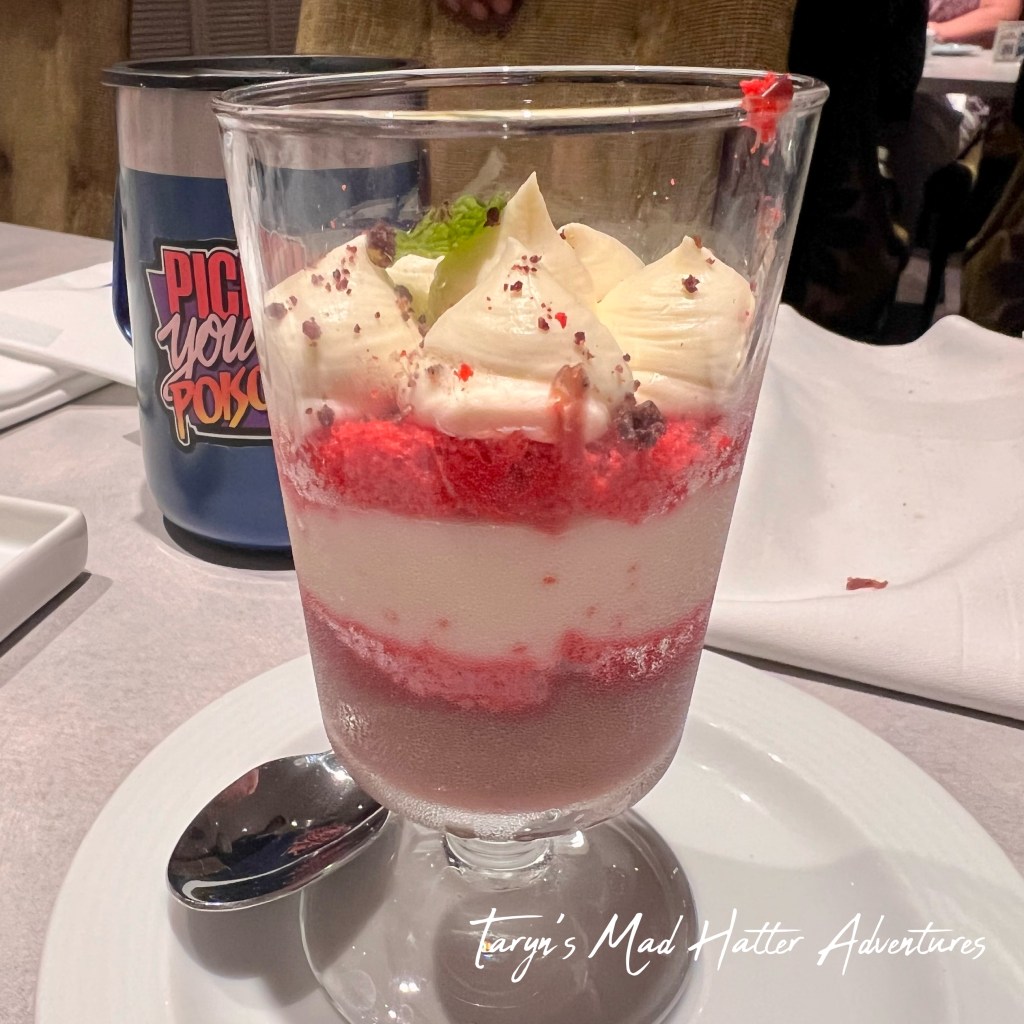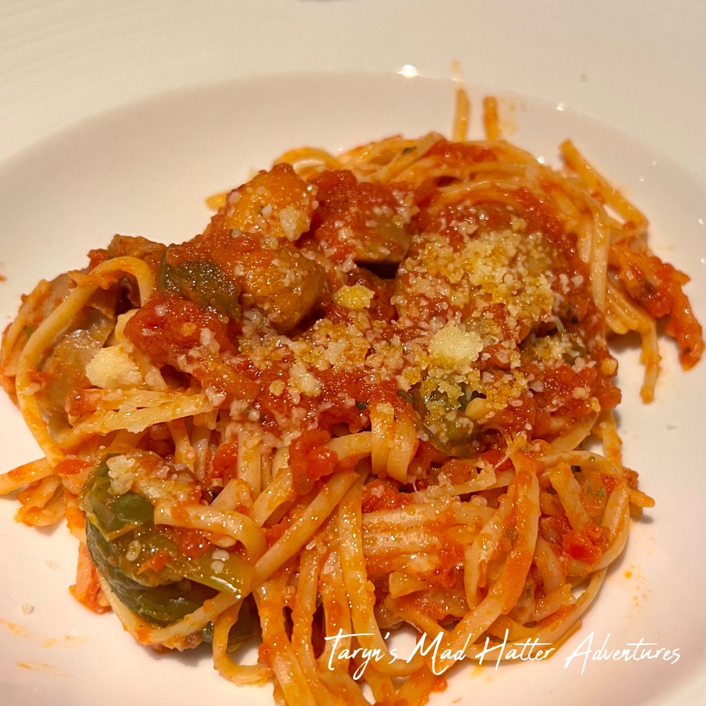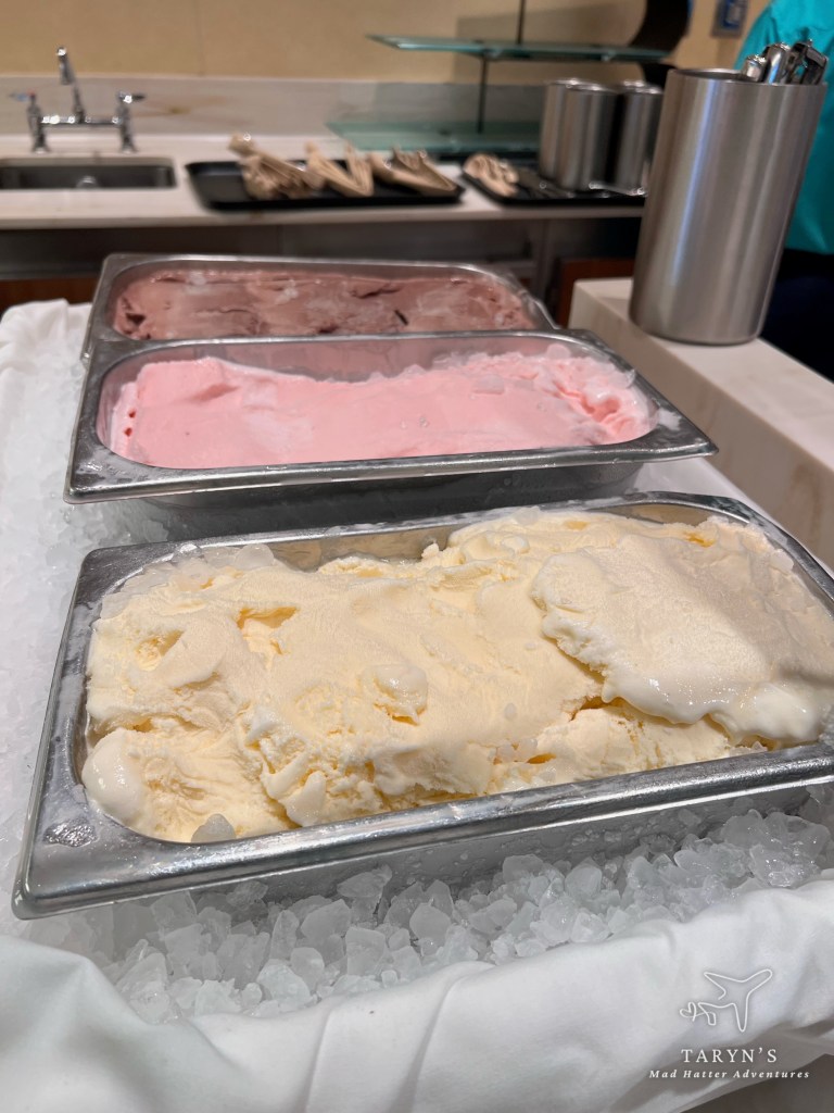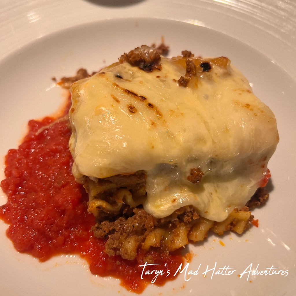 There were many good choices on the Italian themed buffet. (Each day would be a different theme.) We didn’t know at this point that there were actually 4 different buffet lines. And we also didn’t know that the lines served different food (2 served one menu, and the other 2 served a different menu). One thing I can tell you with absolute certainty is that the desserts at the buffet were AMAZING! SO GOOD. And several different choices. It was so crowded, I was not able to get any videos on this day of the buffet! I was lucky to get a pic of this menu!