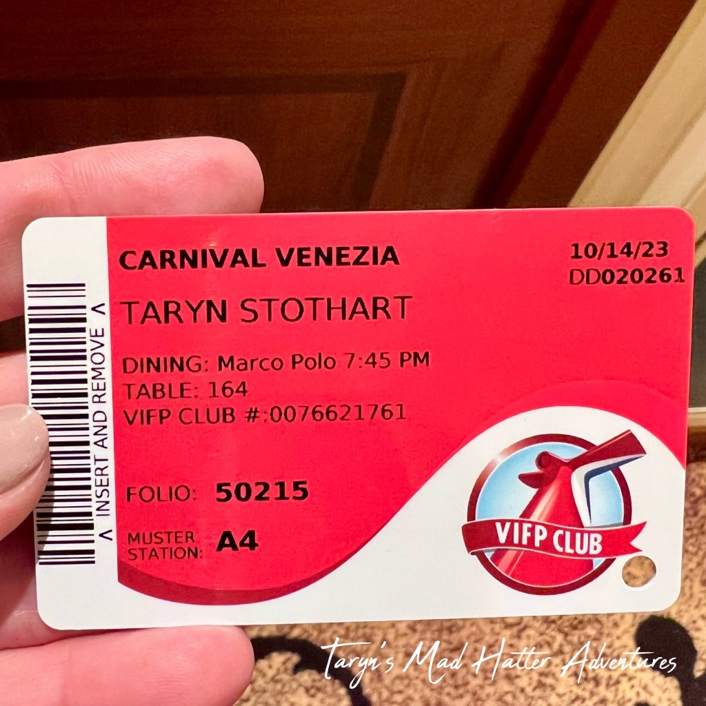 Our Sail & Sign cards were in an envelope in the mailbox on our door. These function as the stateroom key, and is the cashless on board program for all money transactions. Anything extra that you purchase on the ship can be charged with this card and go on your shipboard account. This is paid then with the credit card that you put on file during online check in.
