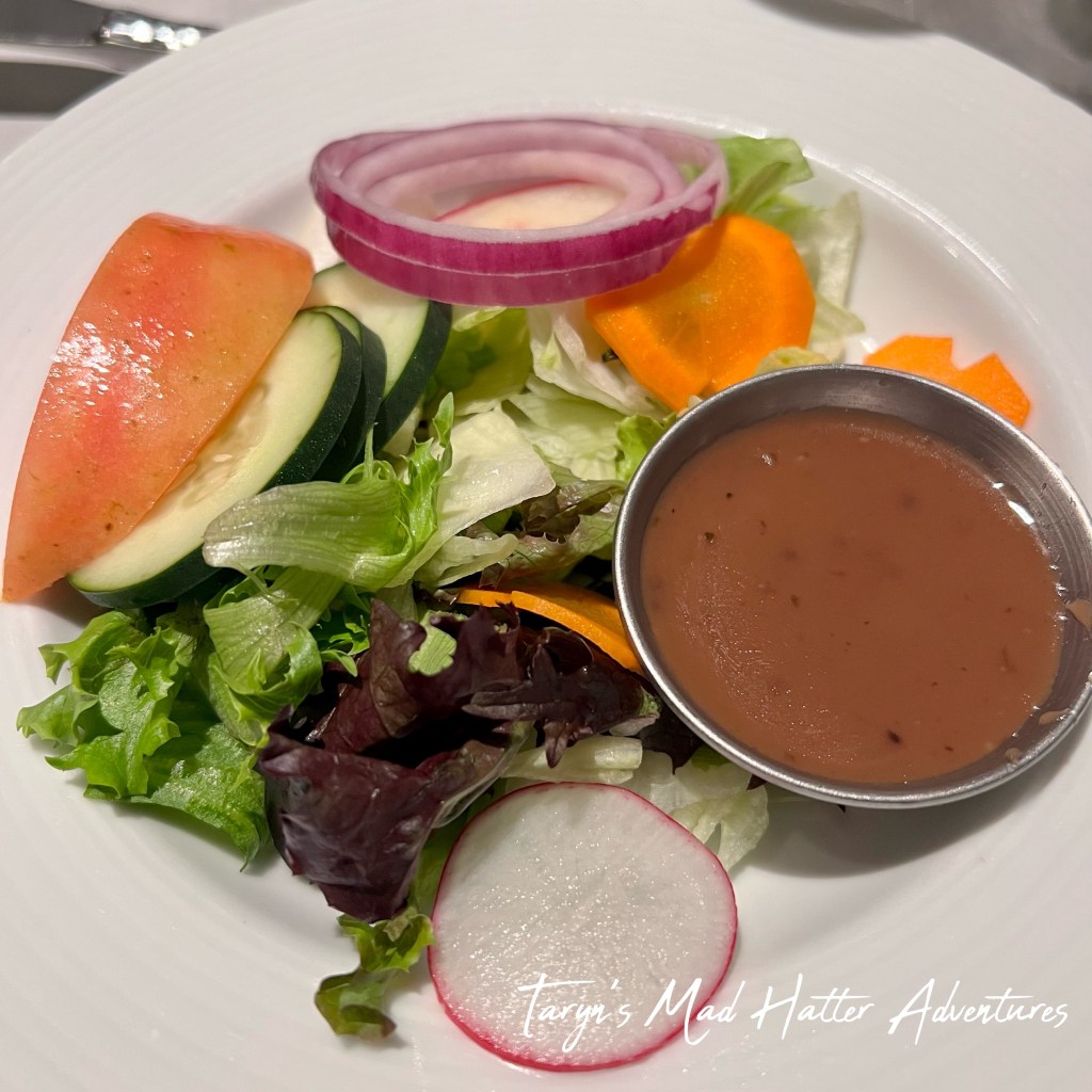 I started off with the Mixed Greens (tomato, cucumber, red onions, carrots, balsamic dressing), and it was really good. I figured I better fit in as many vegetables as I could this week!