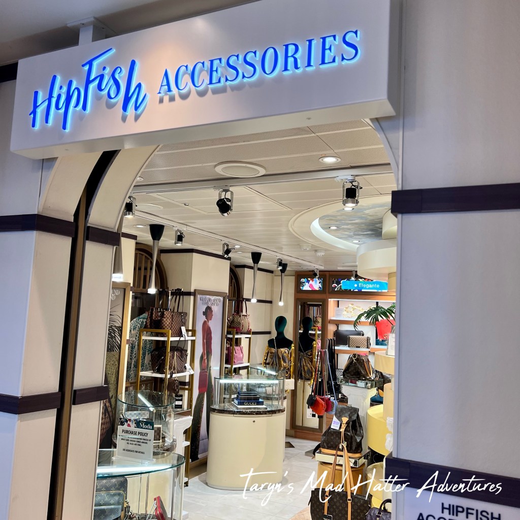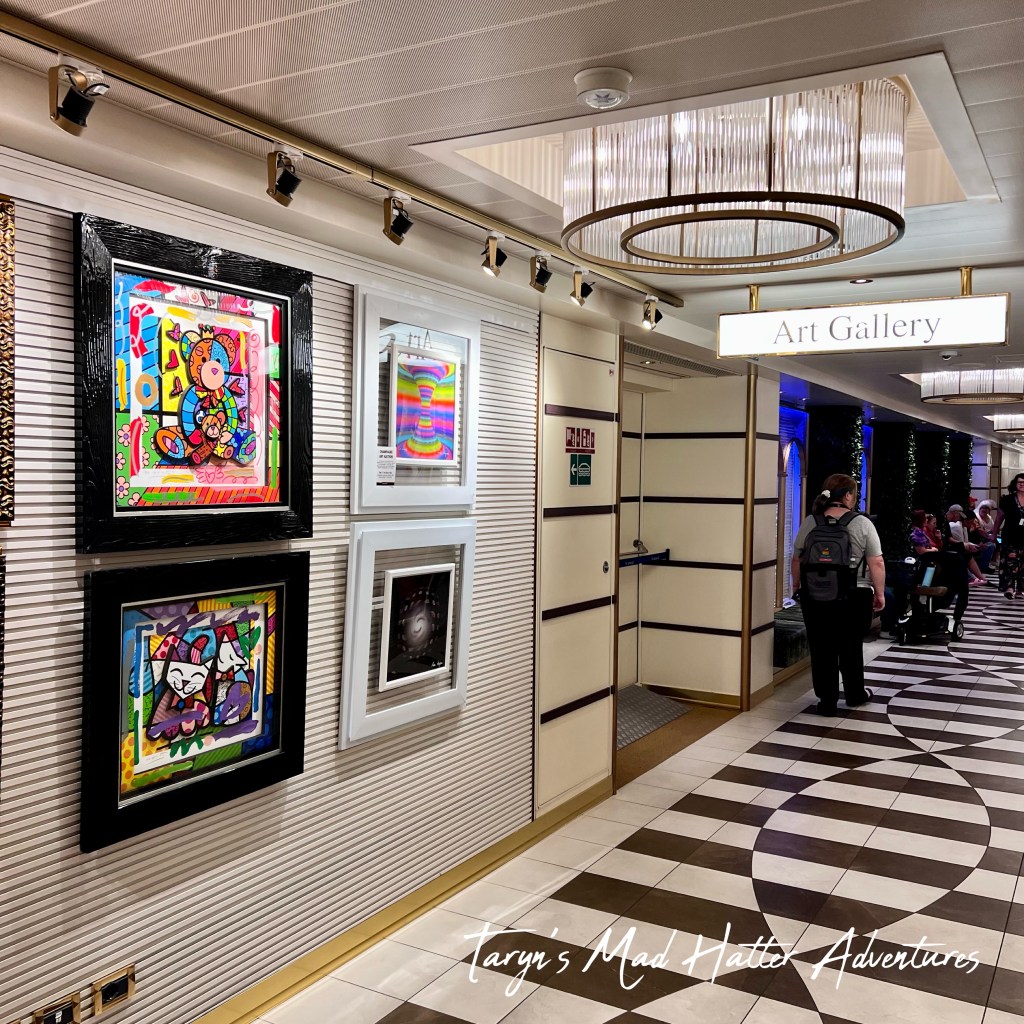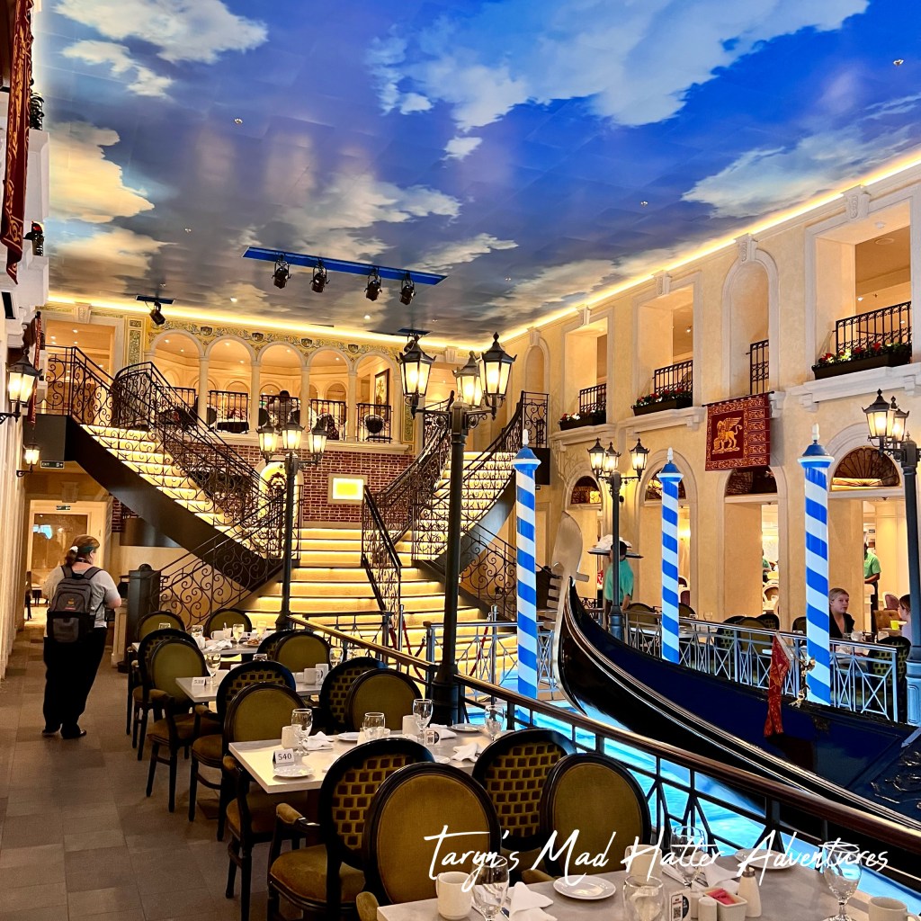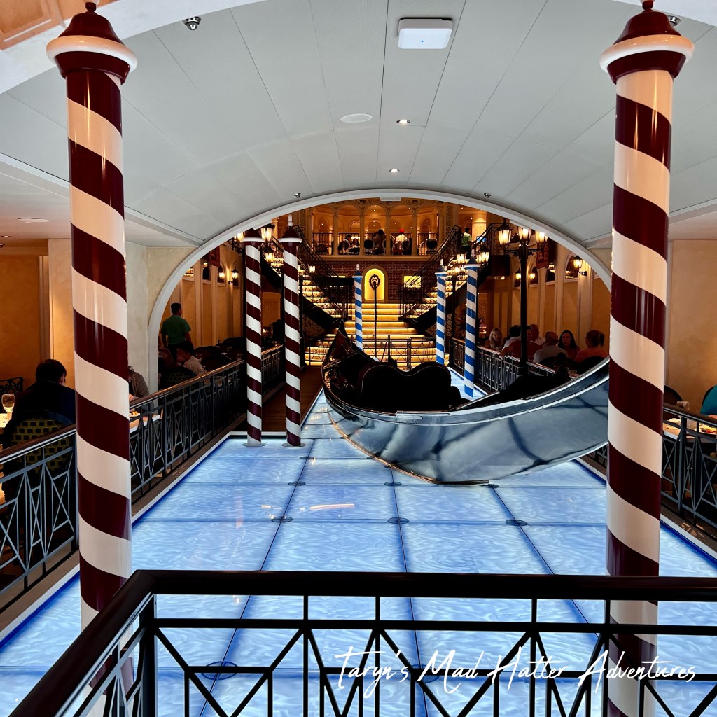 Today was a day at sea. We slept in and decided to try the Sea Day Brunch in the Canal Grande Restaurant. You can use the app to make a reservation, and then it will alert you when your table is ready. It does tell you how about how long until your table will be ready (10-20 minutes, 20-30 minutes, etc.) and then once it alerts you, you have 10 minutes to get to the restaurant. We made the reservation and then headed that direction. On the way, I took some pics of some shops.