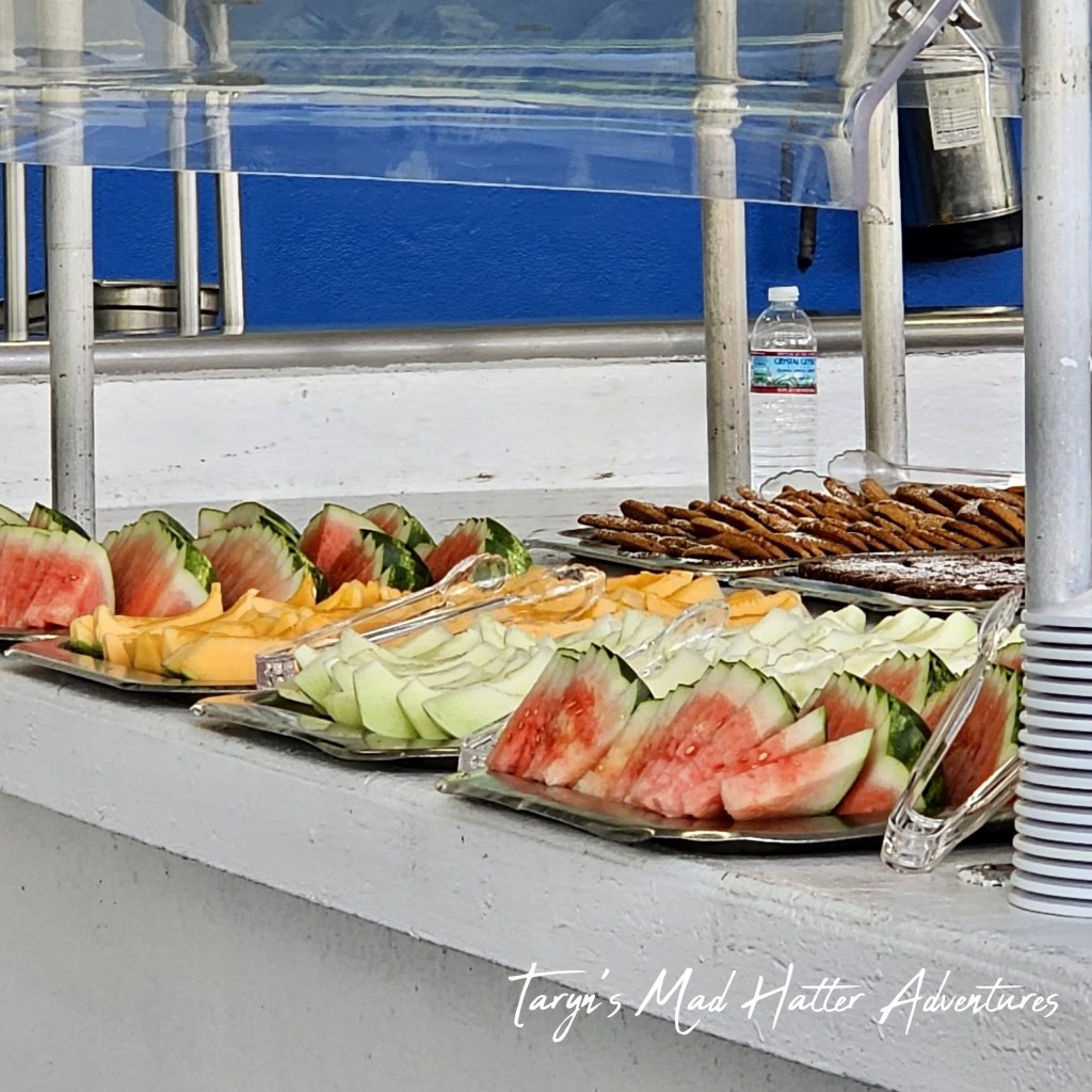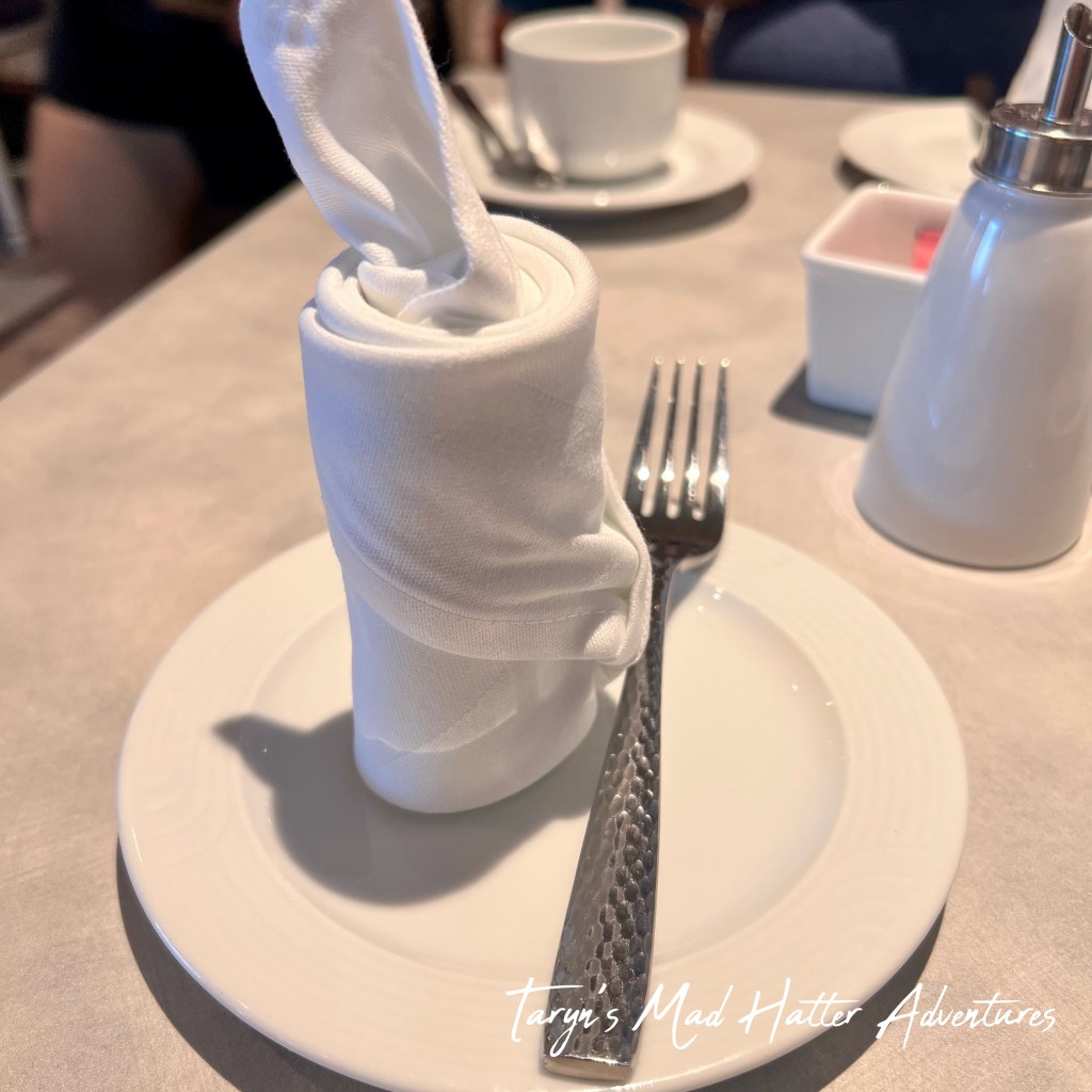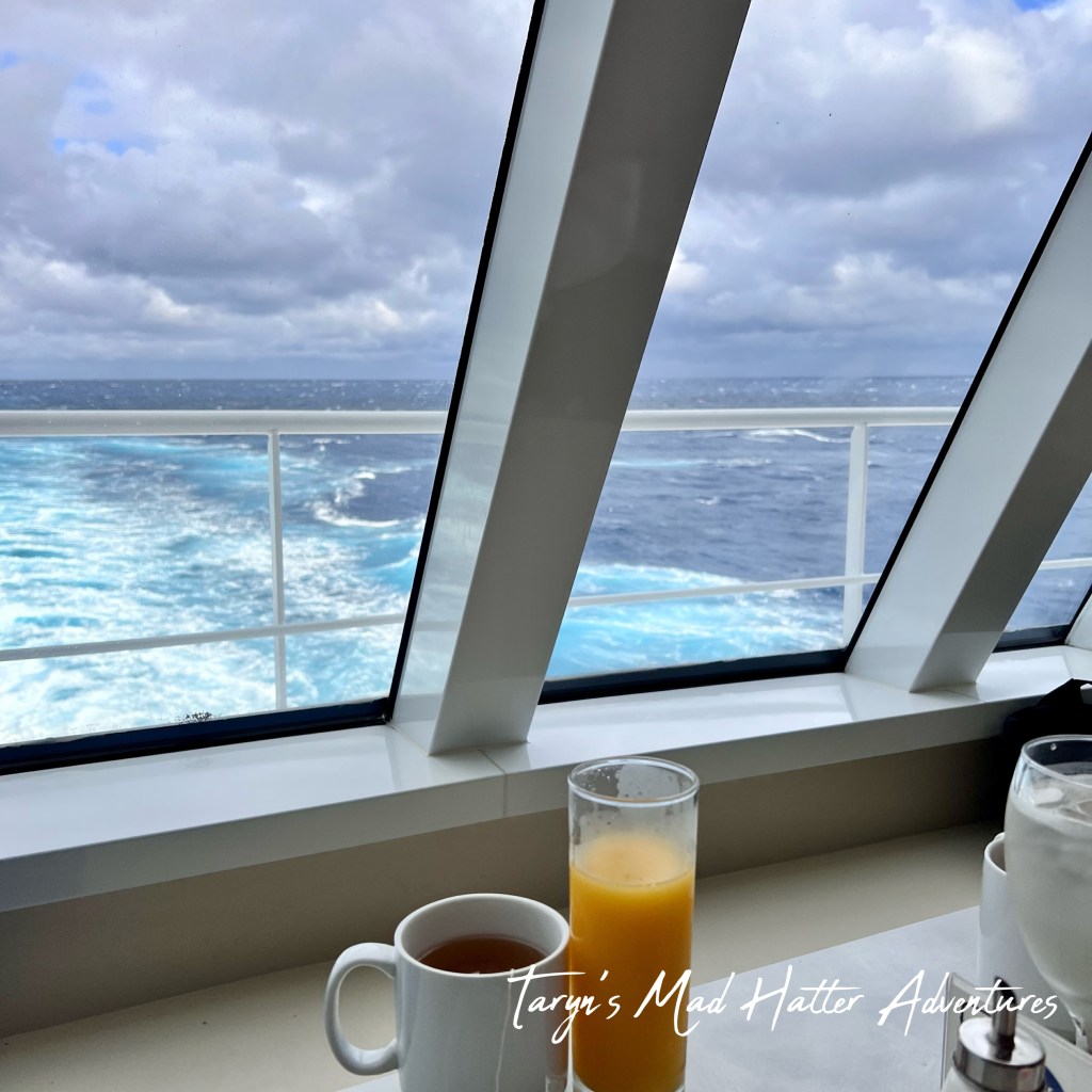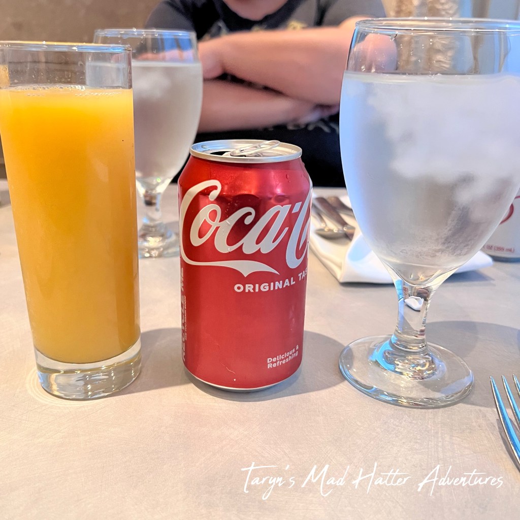 We were seated at quite possibly the best table in the restaurant! It was right next to the window in the back of the ship. We had a GREAT view! For my beverages, I ordered the orange juice, and hot tea. You can order anything you want off of the menu, and as much as you want.