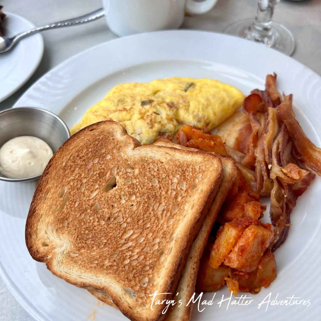 I also ordered white toast, the vegetable omelet, bacon and brunch potatoes.