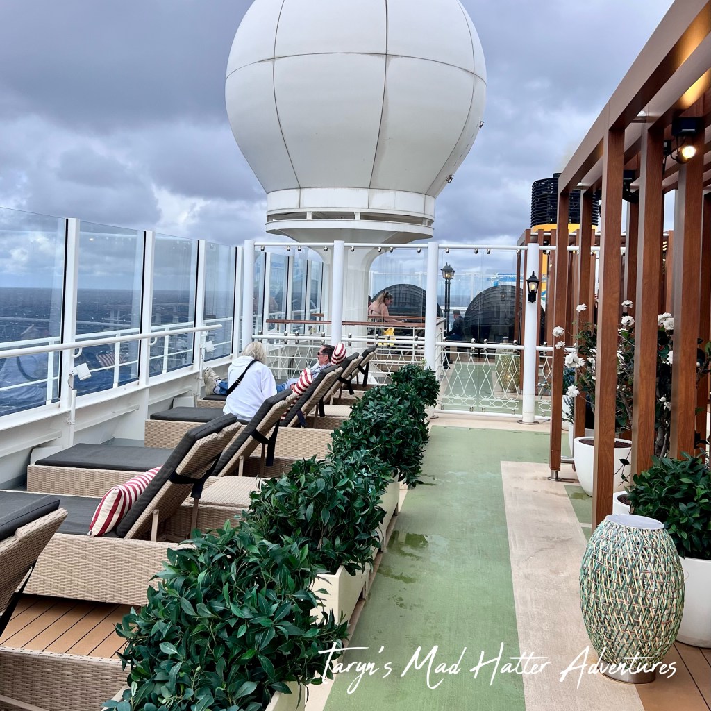 There are also several loungers on this deck. In the picture below you can see the retractable roof that is over top of the Lido Deck, Deck 10.