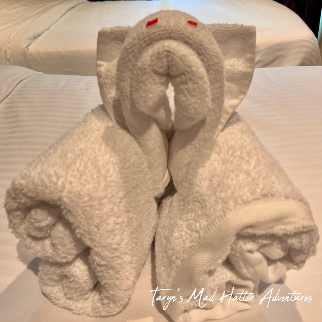 We had preordered bottled water and beer. We did this on the app, and it was in our room upon arrival. I ordered two 12 packs of water ($19.90), and a 4 pack of Miller Lite ($24.00). I had looked at pricing ahead of time and this was cheaper than ordering it once onboard from the bar. Since we had a beverage cooler, I liked this option. I like to have bottled water on port days and in the stateroom. Water is available at the buffet and on deck 10 but it’s not bottled.