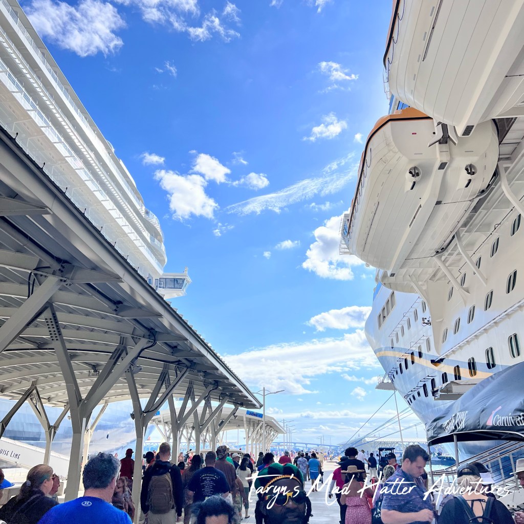 Once inside the terminal, it took us about 30 minutes until we were entering the ship. There were so many staff members working, and they were all friendly and helpful. There were different lines for everything…security, check-in desk, boarding, and everyone was great at directing.