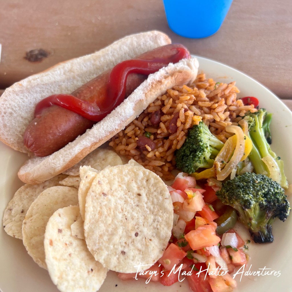 I got a hot dog and fries. The hot dog was eh, and I only ate a few bites. But the fries were good!