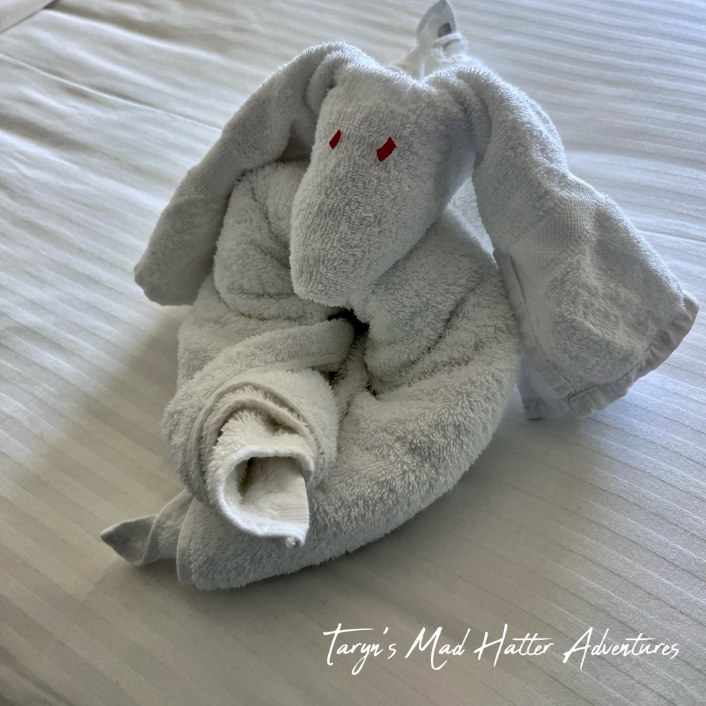After our snack, we went back to the room to unpack some more and get ready for dinner. While we were in the cabin, our stateroom attendant, Suazo stopped by to introduce himself and drop off our excursion tickets for later in the week. I asked him for some more hangers and he gladly brought me some.