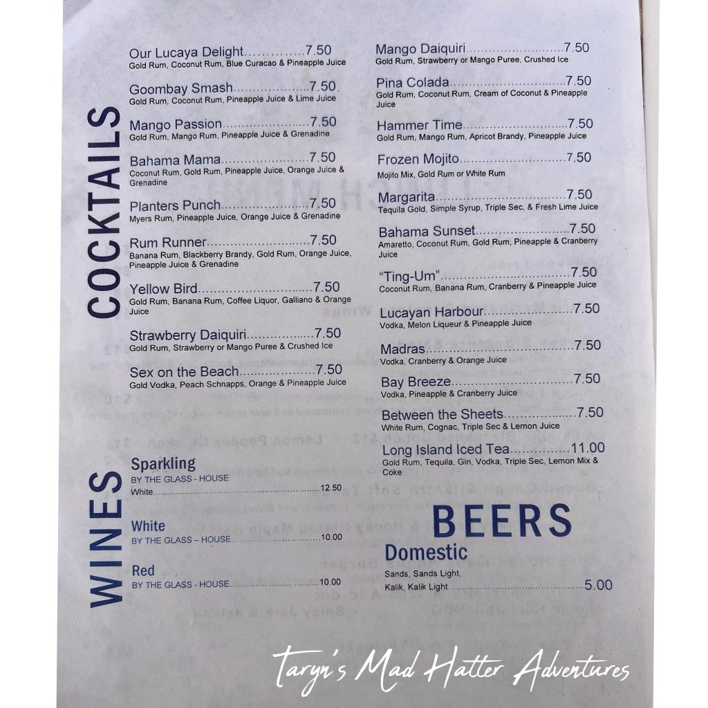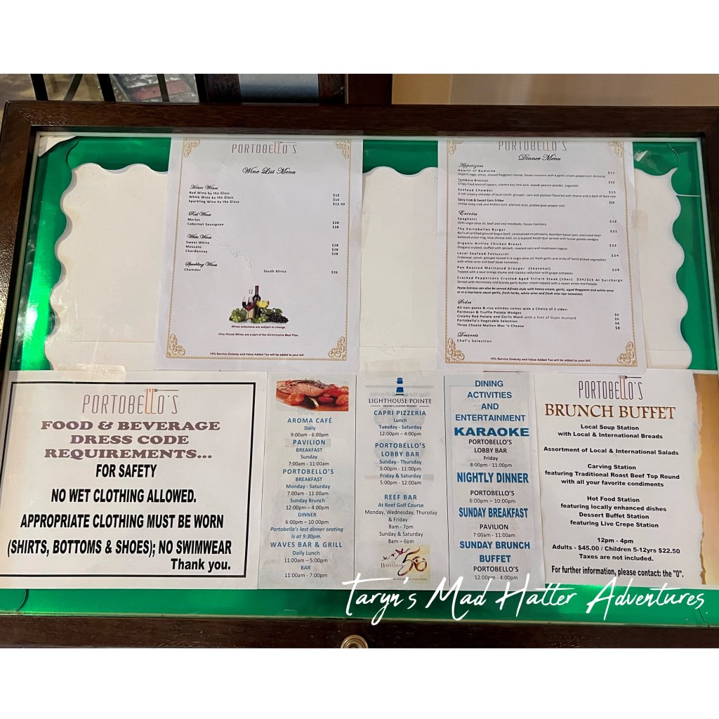Here is the menu from Portobello’s located near the lobby of the resort.
