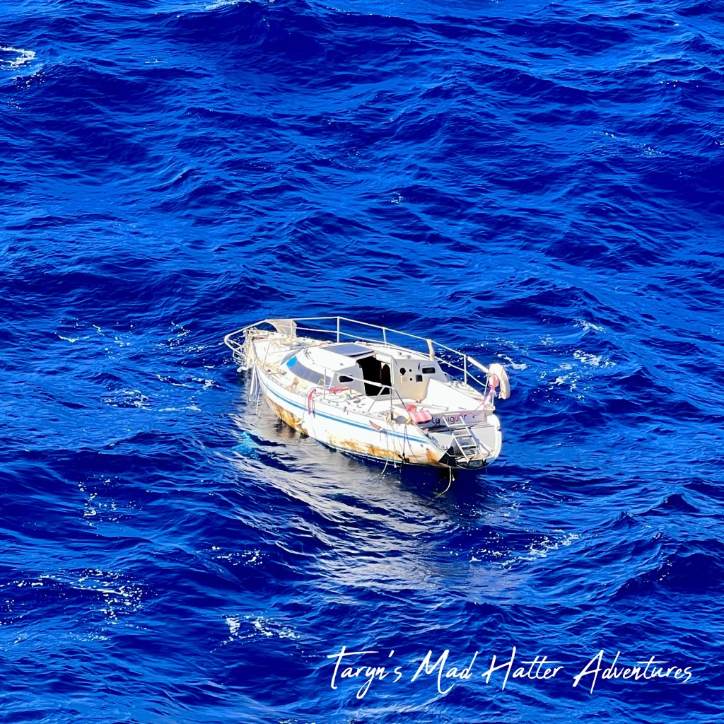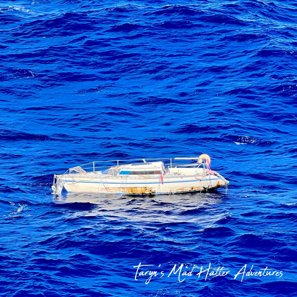 This went on for a little while. We had to keep turning and trying to get closer. And then they inspected from the bridge to see if anyone was onboard. It was determined to be an abandoned boat, and we were back on our way.
