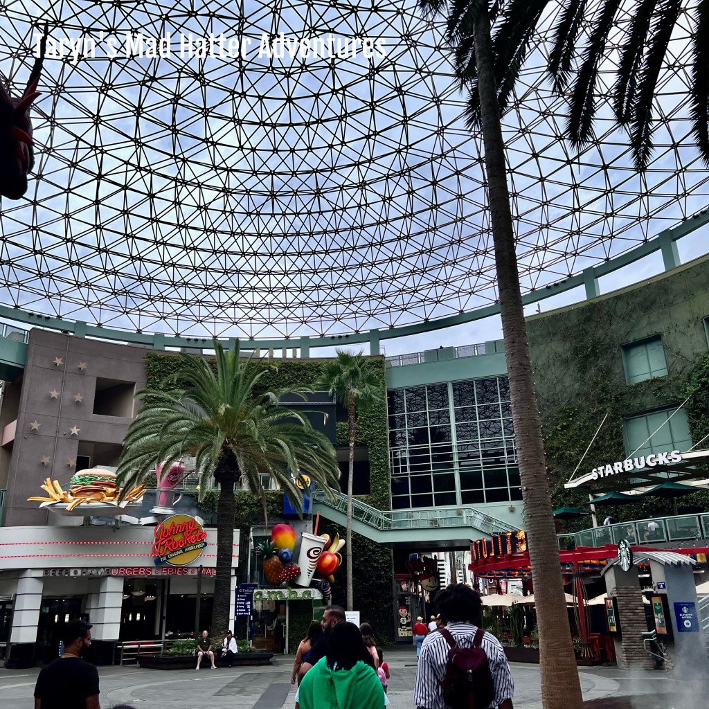 Once parked in the parking garage we headed toward the park. To get there, we had to walk through City Walk. This City Walk was much different than the one in Orlando! Some of the shops and restaurants were the same, but the layout was not the same. It seemed smaller and more closed in. Shops were one after the other, connected along a walkway.