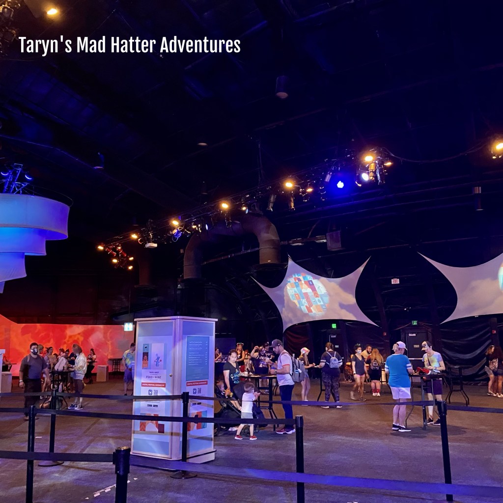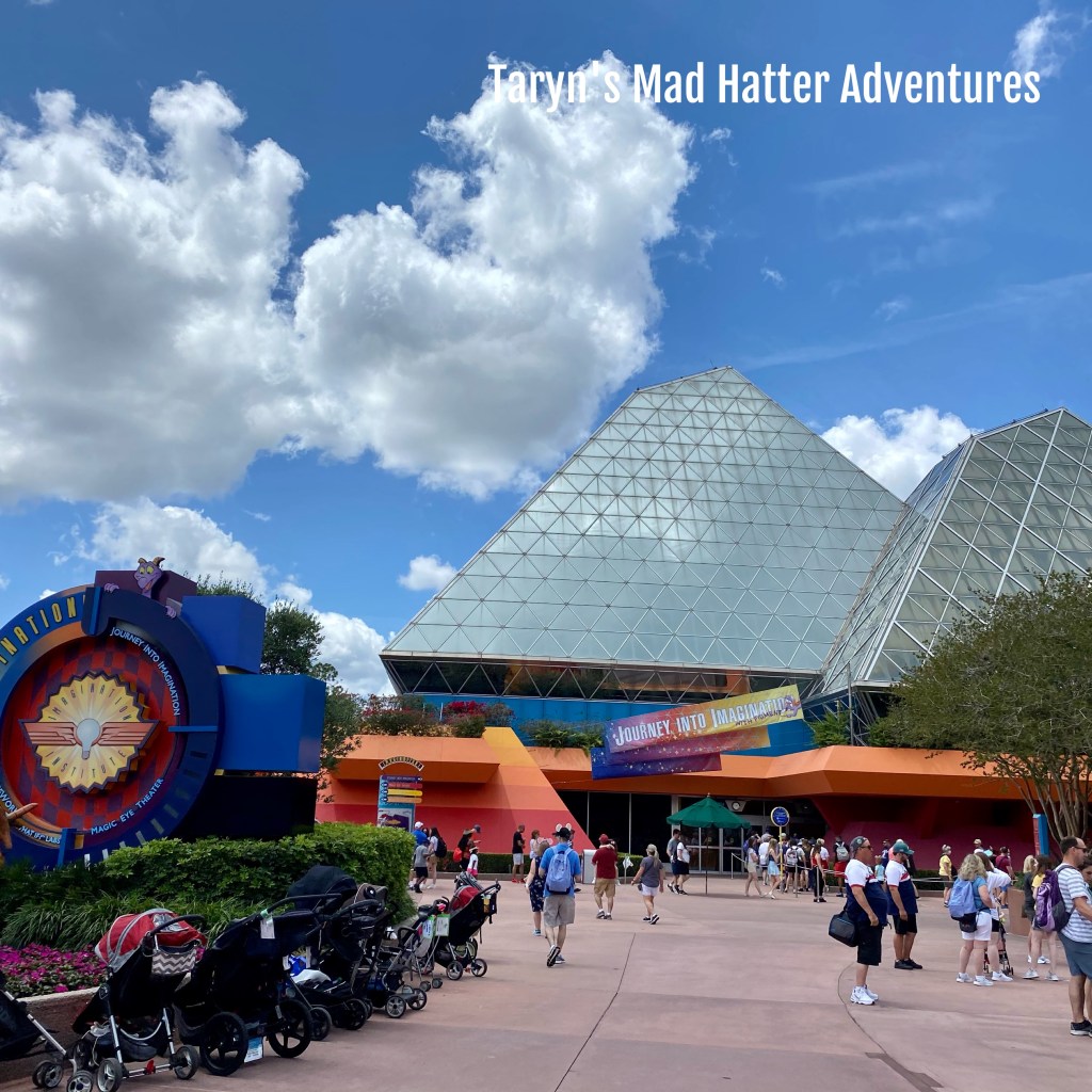 From there we headed to Spaceship Earth. Wait time posted was 20 minutes. We waited 25 minutes. Once exiting there are no games anymore. It’s completely silent! I’m assuming this is because of Covid, and the fact that they don’t want people touching the games and crowding. We went over to Journey Into Imagination with Figment, which had a 20 minute wait time posted. We waited 5 minutes. Also, at the end of this attraction there are no games or anything interactive!