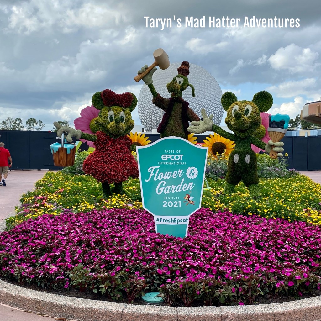 From there we needed to head to our Frozen Ever After FP+. We cut through the walkway to the left and got some good views of the scenery being set up for the Flower & Garden Festival.