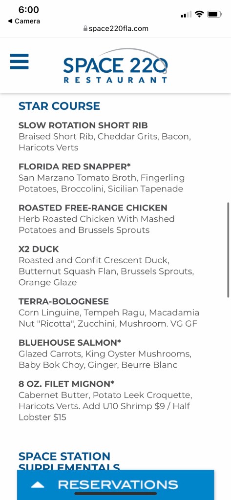 By some miracle, I was able to score a reservation to the brand new restaurant in Epcot…Space 220! It was only for 4 people, so our group of 14 had to draw straws. Kidding, kidding!
