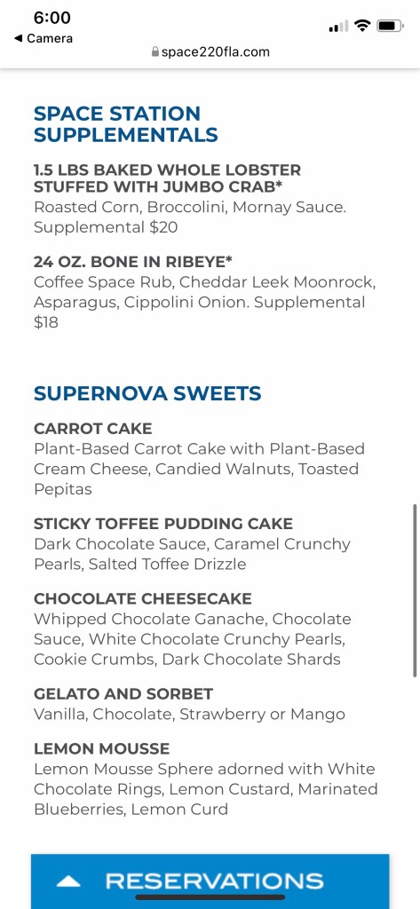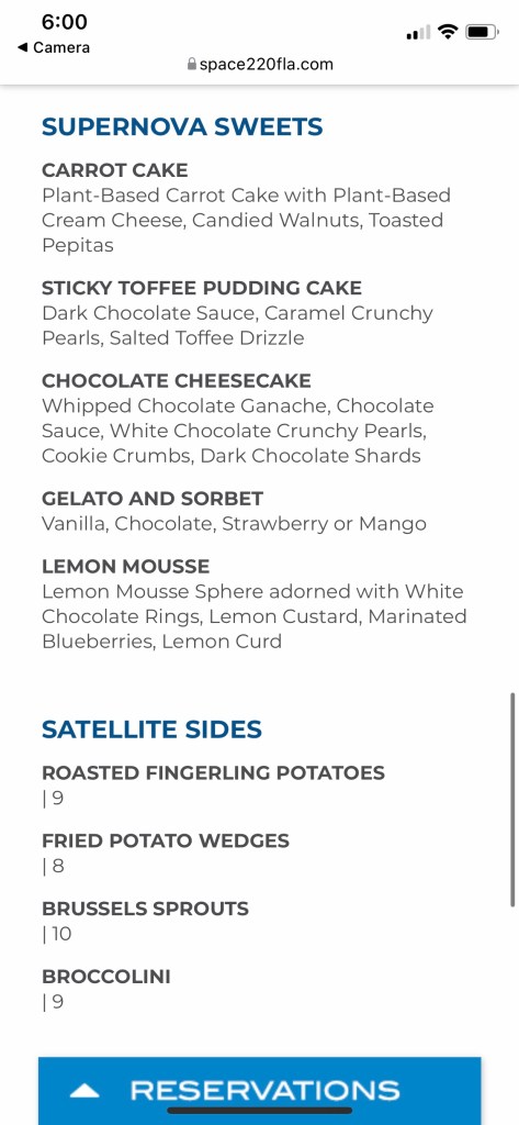 Overall, we really loved our experience here. Yes, it’s pricey at $79 per person. But that includes an appetizer, entree, and dessert. It’s really not THAT much more than a two credit Disney table service restaurant. The atmosphere was really cool, and the service was great. I definitely would come again for lunch or to sit in the lounge area!
