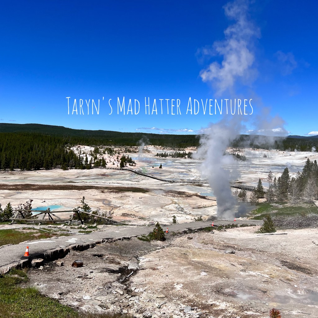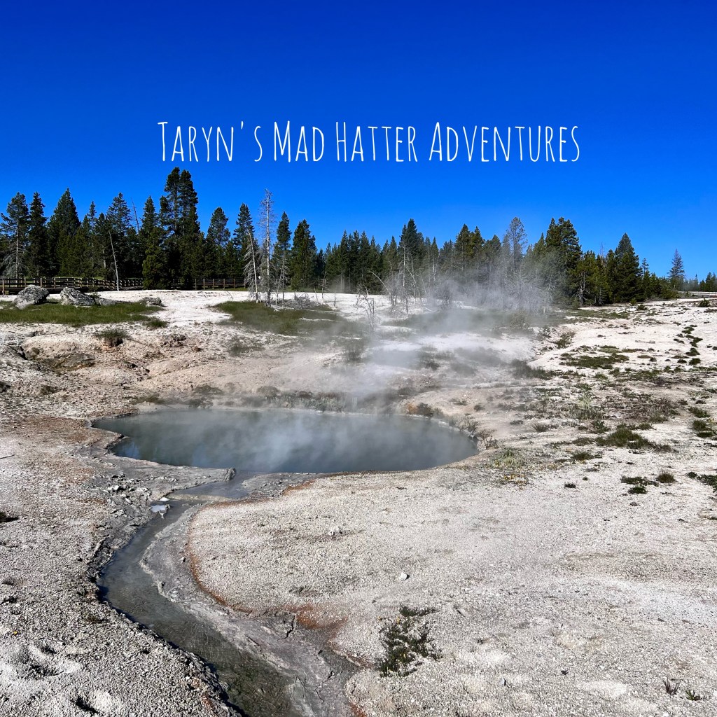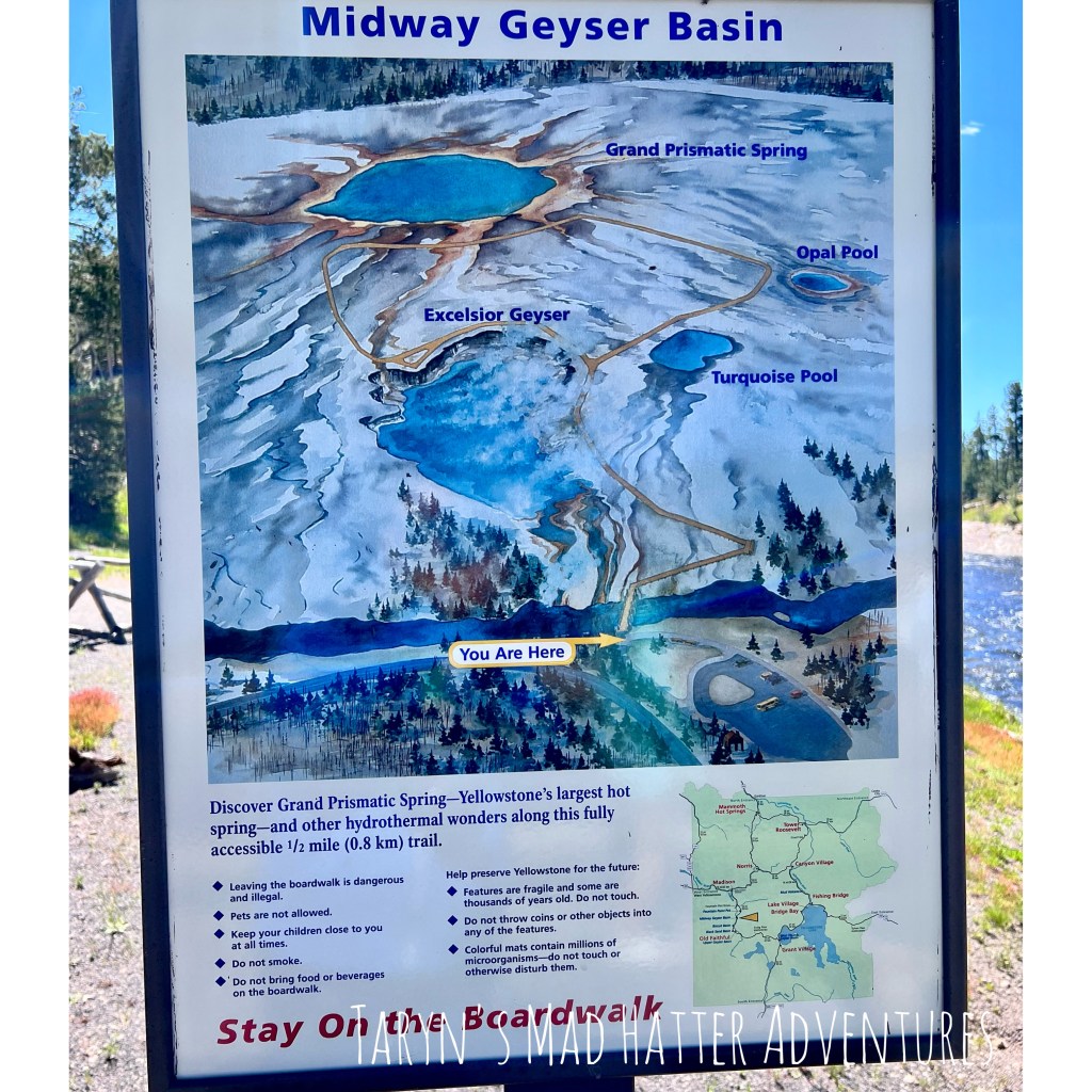 Upon entering the park, we headed south towards the Midway Geyser Basin, which is where the Grand Prismatic Spring is located. When researching the trip, I knew this was one destination I definitely wanted to visit! This area was veryyyyy busy. The small parking lot was completely full and we waited in a long line of cars to park one by one as people left their spots. In hindsight, we left the hotel around 10 a.m. and finally were able to park around 11:30 a.m. If you are interested in this area, I would get there in the early morning!